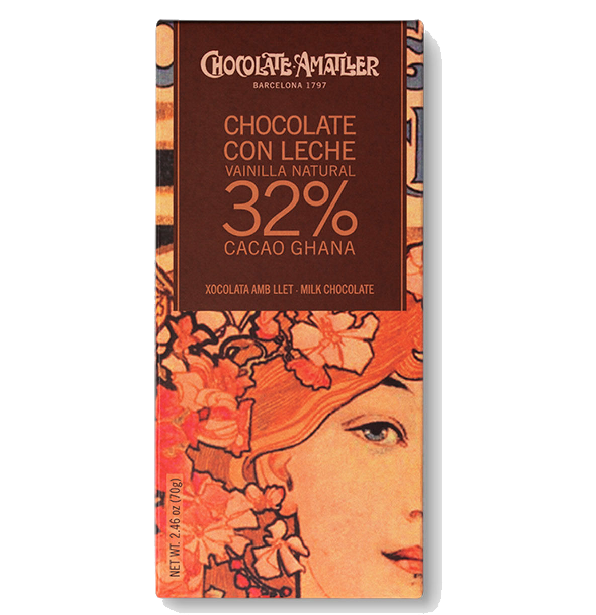 Case of 80 Amatller Kosher tablets 32% Cacao Ghana Vainilla B. 70g