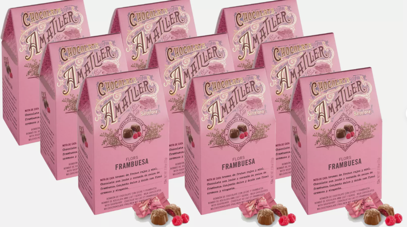 Amatller Milk Chocolate Raspberry Pralines 72g (9x7)