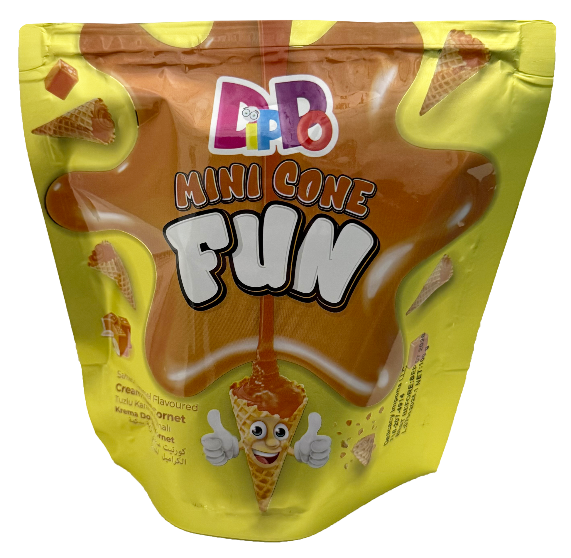 Dippo Salted Caramel Flavored Filled Mini Cones – 100g Bag