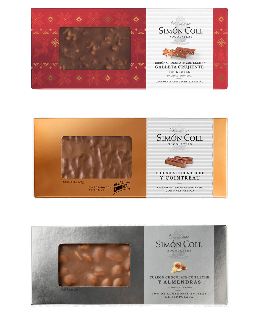 Simon Coll Milk Chocolate Nougat Trio – 3 Bars (250g Each)